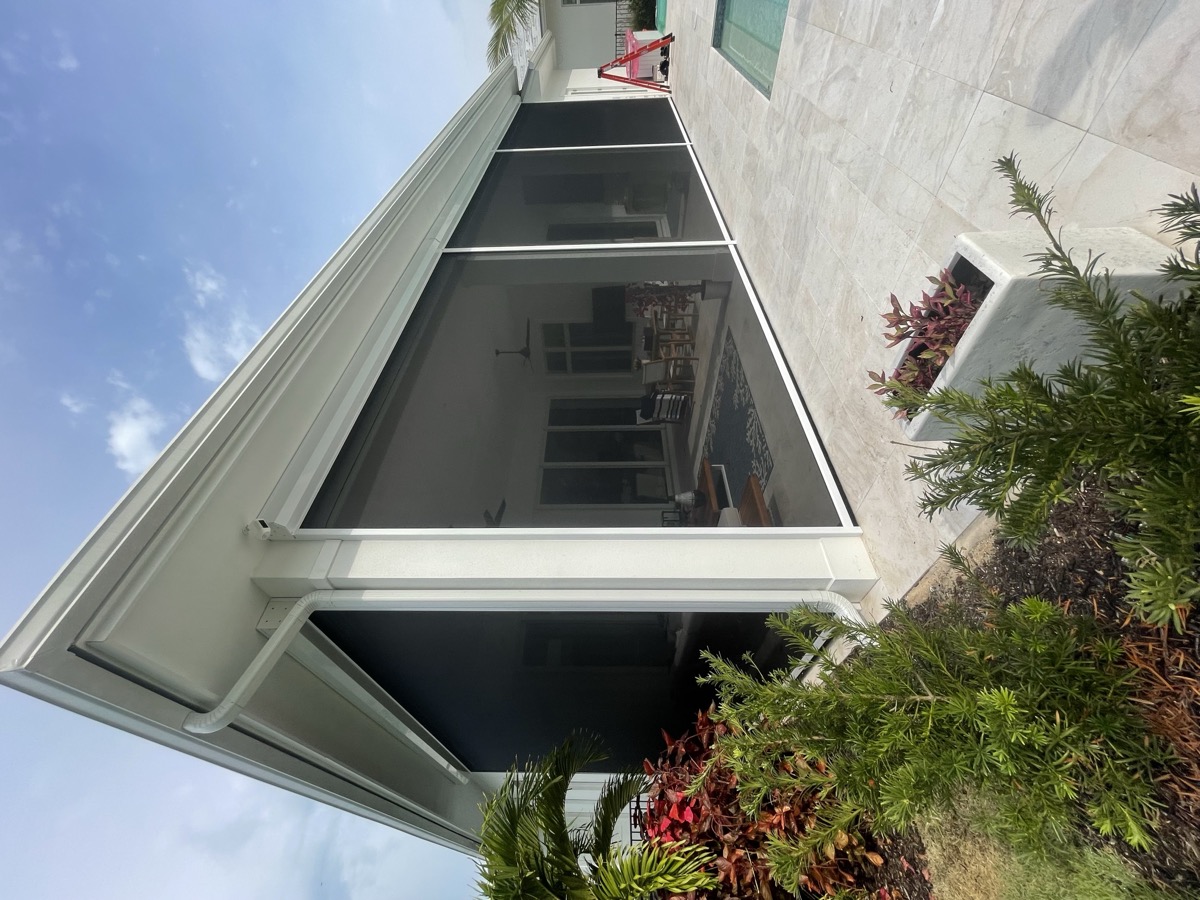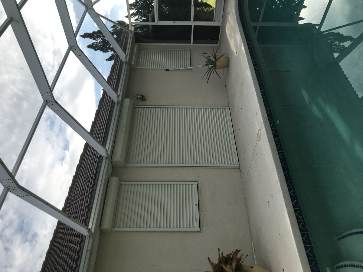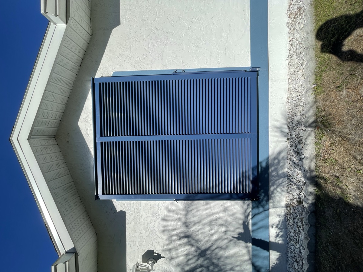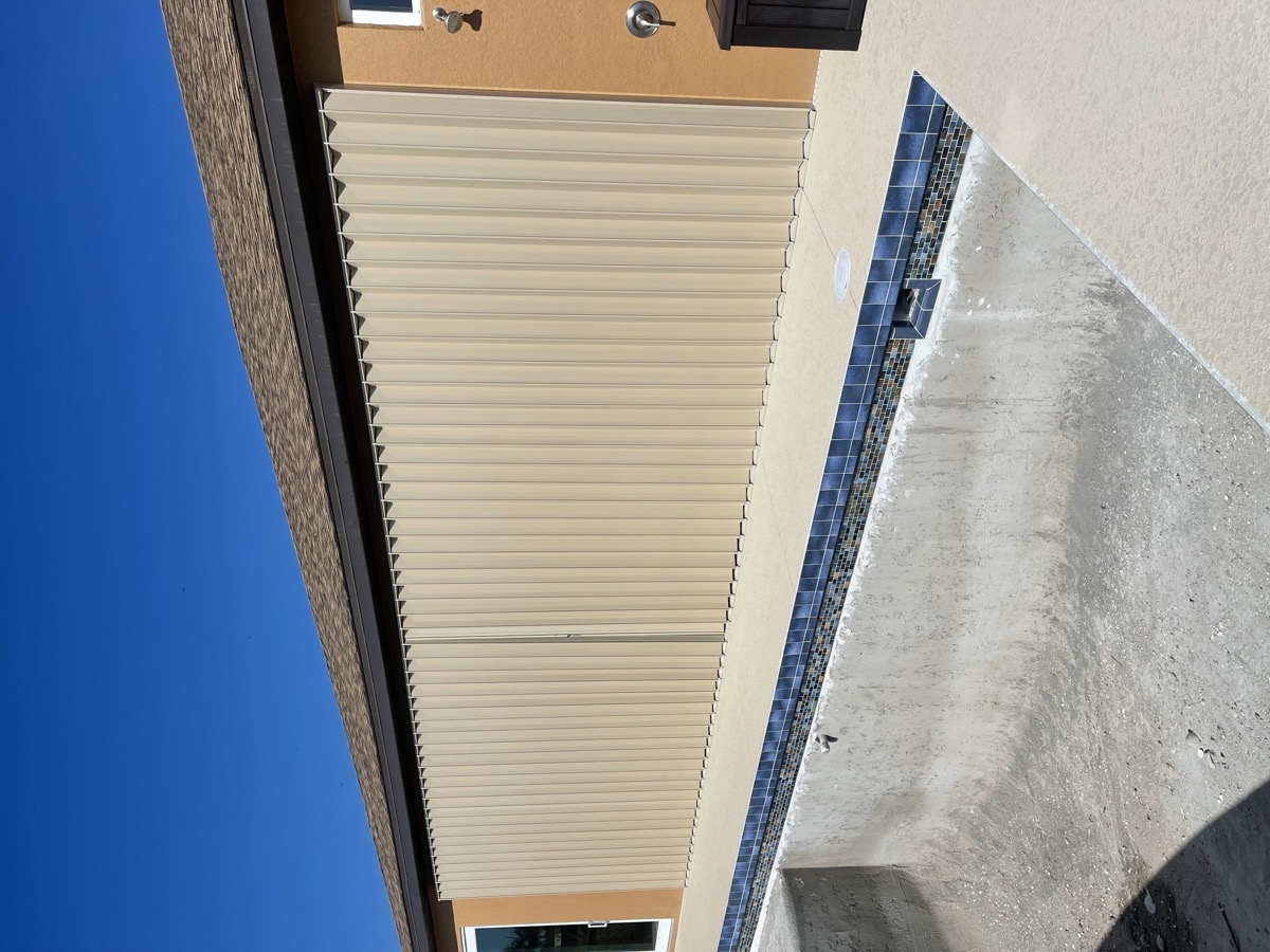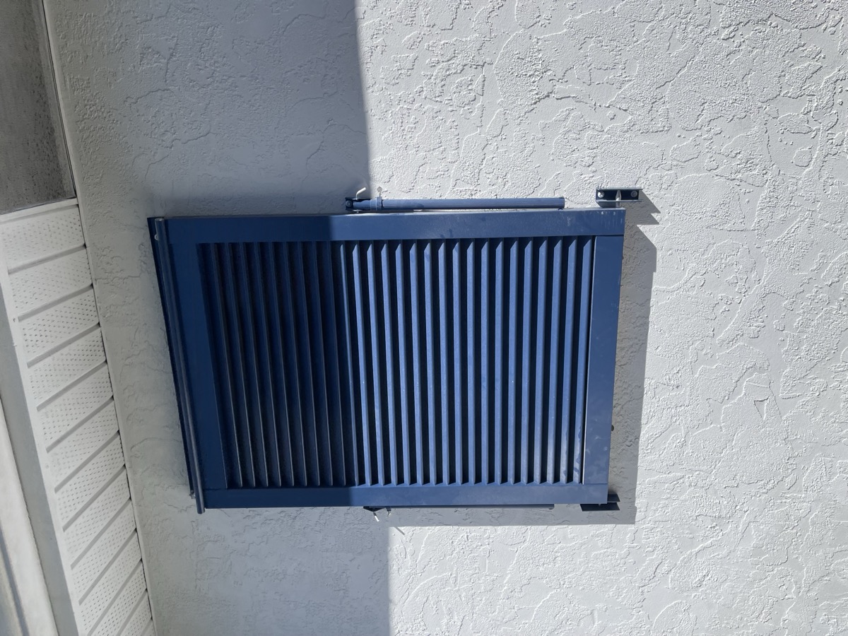 The most popular choice in SWFL. Fold to the side when open, pull across in seconds when a storm is coming. Permanently mounted โ always ready.