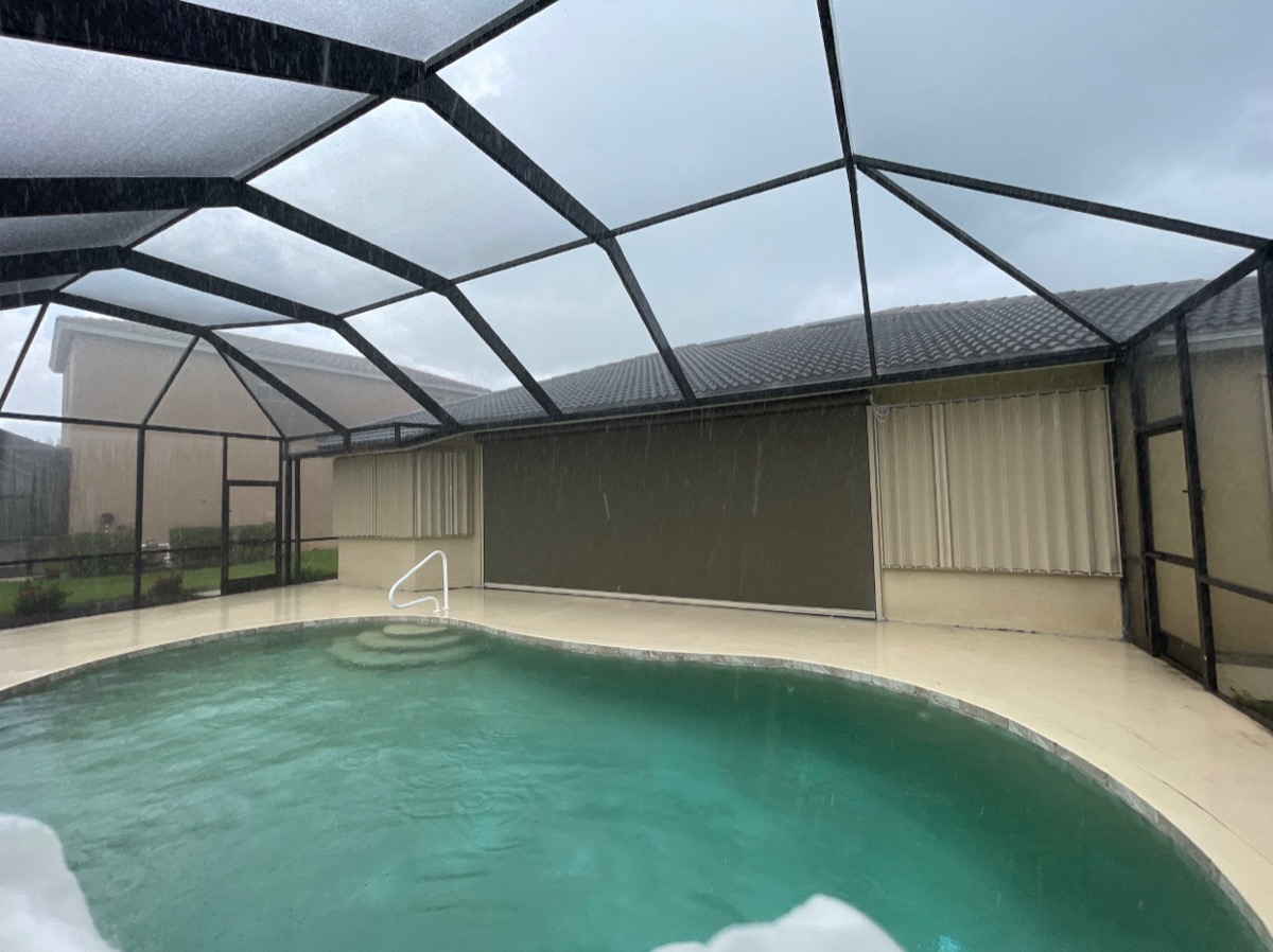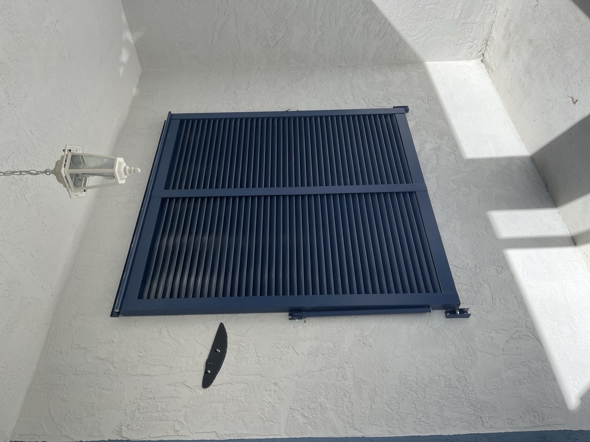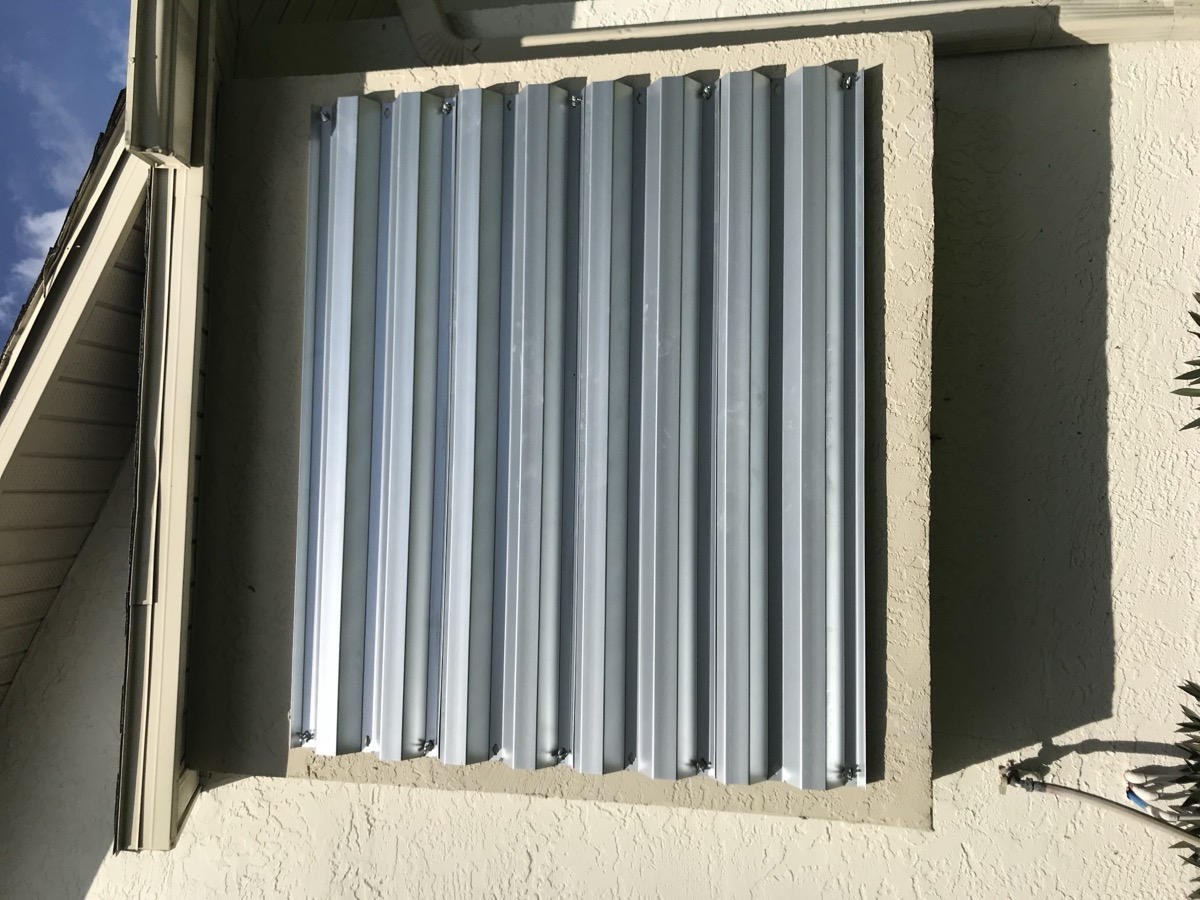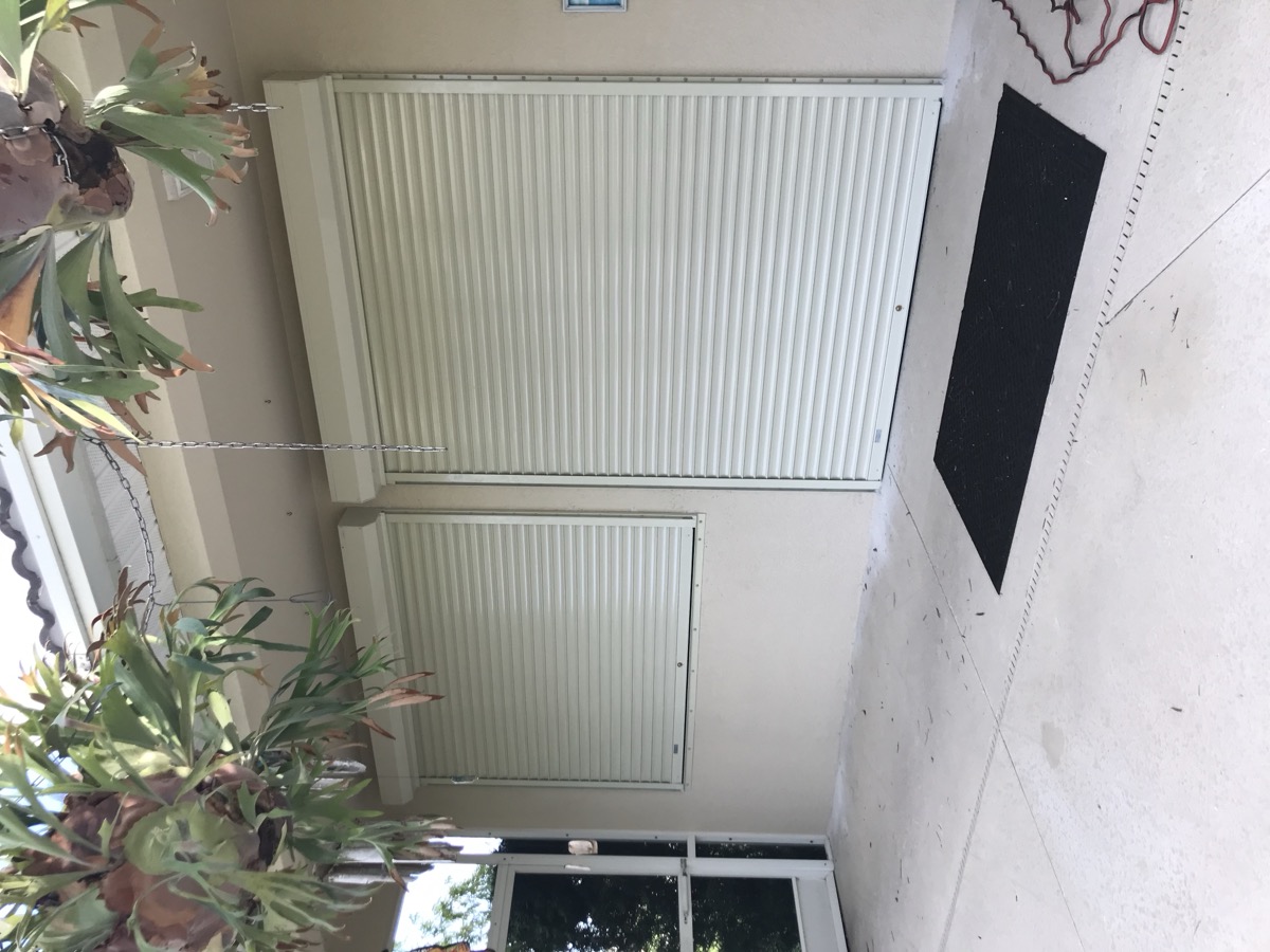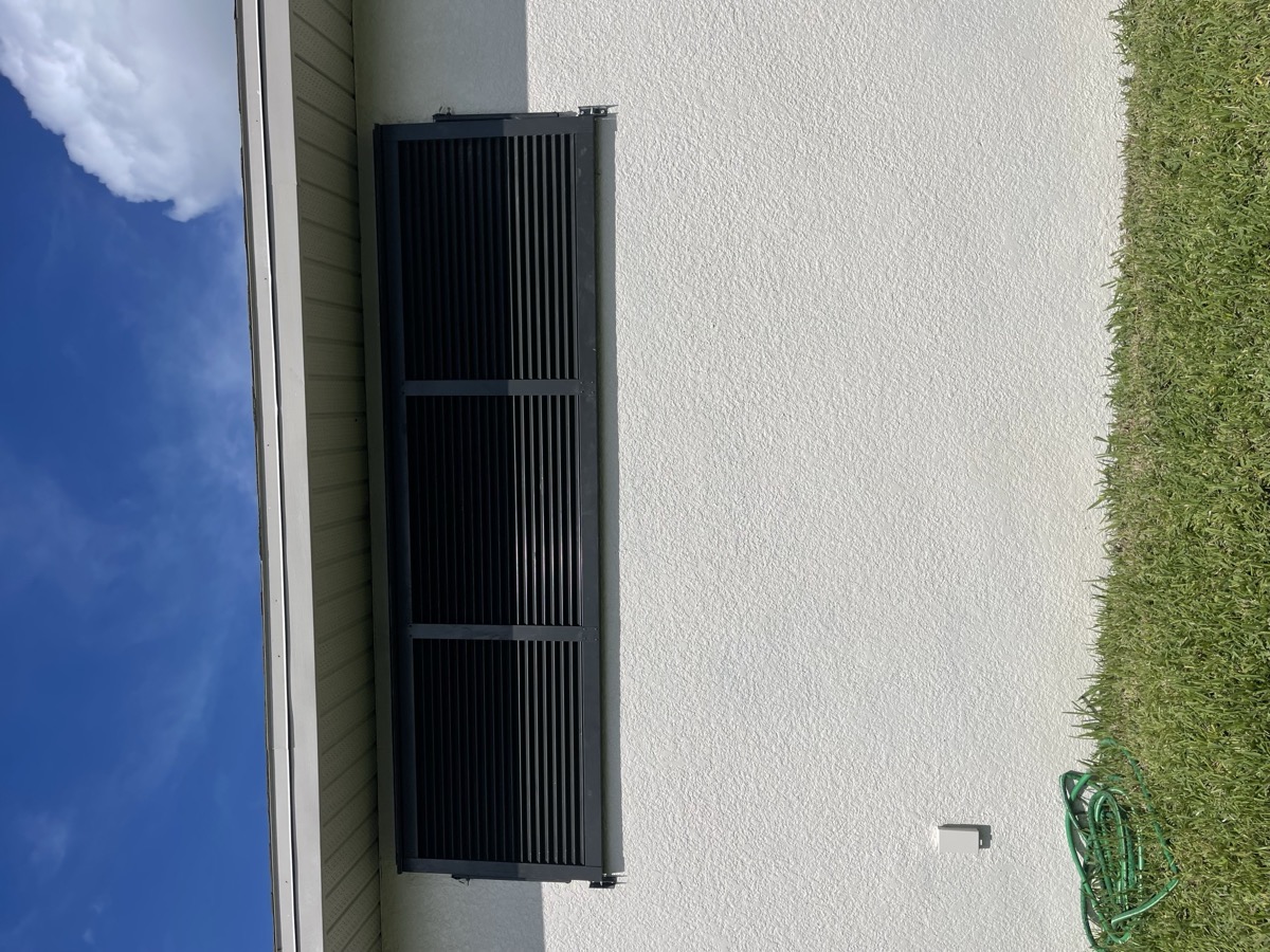 The most popular choice in SWFL. Fold to the side when open, pull across in seconds when a storm is coming. Permanently mounted โ always ready.